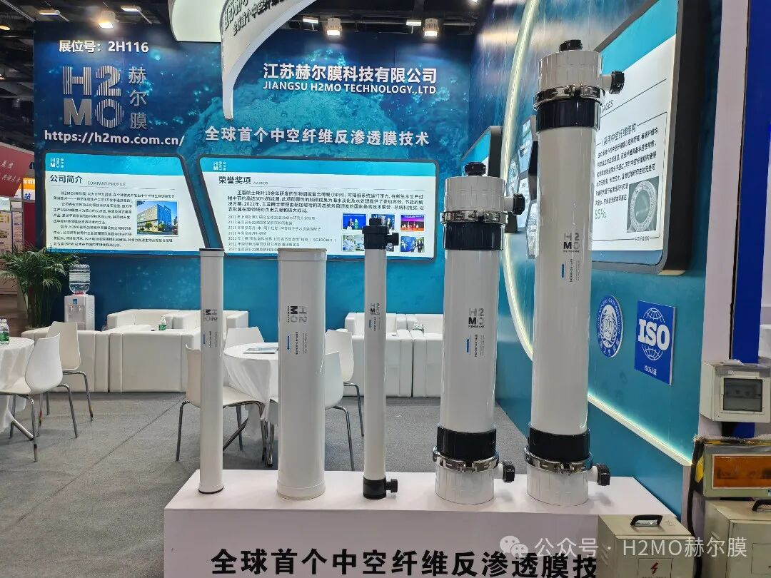 我司在本次展会中重点展示的中空纤维反渗透膜技术为全球首创,以中空纤维复合薄膜(BPM)技术为核心。通过采用独特的中空纤维结构设计,并结合仿生材料构建选择层,使得BPM-RO系列组件具备高通量、低能耗、低污染排放及低碳环保等特性。这一创新技术不仅为水处理行业的技术革新与升级提供了强有力的支持,更为行业的可持续发展注入了新的活力与动能。展会期间,赫尔膜展位人流如织,吸引了来自全国各地乃至全球的行业专家、学者及企业代表前来参观交流。他们纷纷驻足我司展区,对我司展出的BPM-RO产品及其技术解决方案表现出了浓厚的兴趣与高度评价,充分展现了我司在水处理领域的技术实力与创新魅力。