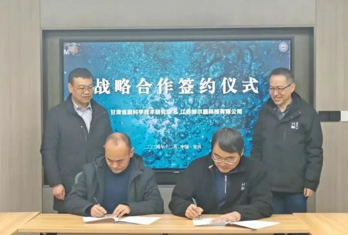 12月24日,甘肃省膜科学技术研究院(简称“甘肃膜科院”)张正志董事长一行到访江苏赫尔膜科技有限公司(简称“赫尔膜”),双方进行了深入交流,并就BPM膜市场推广签署了深度战略合作协议。