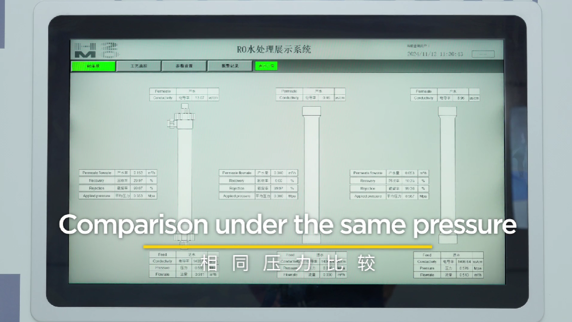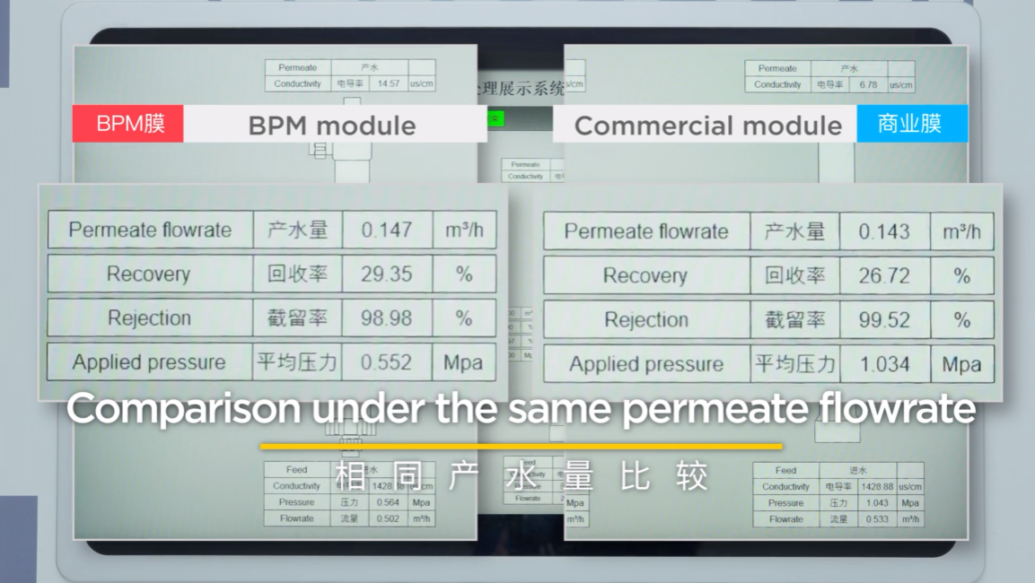 为更直观地呈现 BPM-RO 膜的性能优势,本视频将展示BPM-RO与国际知名品牌RO膜在实际运行条件下的对比数据: