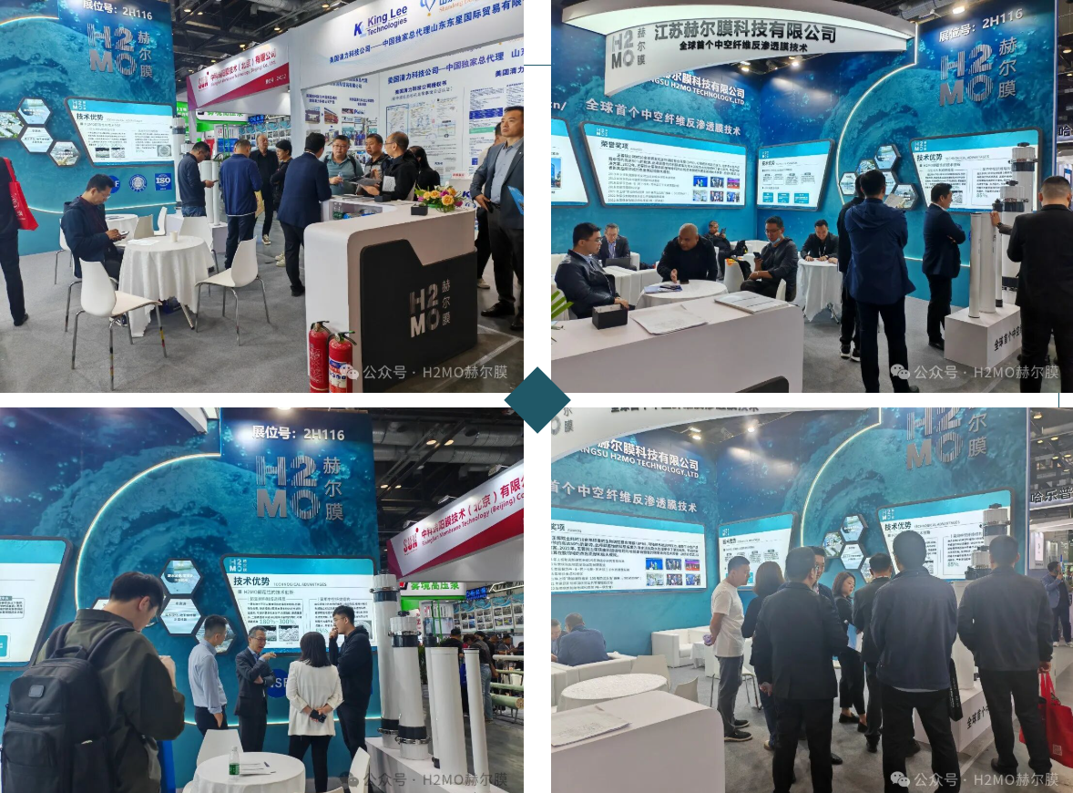 我司在本次展会中重点展示的中空纤维反渗透膜技术为全球首创,以中空纤维复合薄膜(BPM)技术为核心。通过采用独特的中空纤维结构设计,并结合仿生材料构建选择层,使得BPM-RO系列组件具备高通量、低能耗、低污染排放及低碳环保等特性。这一创新技术不仅为水处理行业的技术革新与升级提供了强有力的支持,更为行业的可持续发展注入了新的活力与动能。展会期间,赫尔膜展位人流如织,吸引了来自全国各地乃至全球的行业专家、学者及企业代表前来参观交流。他们纷纷驻足我司展区,对我司展出的BPM-RO产品及其技术解决方案表现出了浓厚的兴趣与高度评价,充分展现了我司在水处理领域的技术实力与创新魅力。