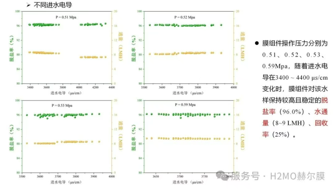本次战略合作协议的签署,基于赫尔膜与甘肃膜科院在康润再生水厂中试项目取得的圆满成功。康润再生水厂为国家能源石横热电厂生产用水净水厂,此次中试采用赫尔膜的BPM膜系统对其反渗透浓水进行回收再利用处理。BPM膜系统凭借其卓越性能,无论是在高盐度、高硬度还是含有多种污染物的条件下,BPM膜系统均可实现25%的回收率,确保出水水质达到甚至超过预期标准。且BPM膜系统运行压力较低,同样进水条件下,本项目所需压力约5.5-6.5公斤,相对于传统反渗透膜压力降低约50%-65%。这大大降低了运行过程中的能耗和运维成本,成为推动双方深化合作、建立长期战略伙伴关系的核心要素。