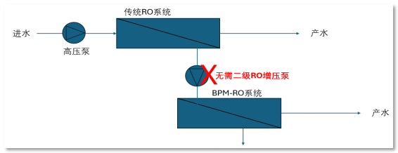 本项目采用创新的BPM-RO系统方案,核心优势突出,极具行业突破性:其一,实现一级反渗透浓水余压直驱(无泵)系统运行,无需额外配置中间水泵及水箱,大幅简化流程的同时,直接节省吨水成本50%;其二,水资源利用率显著提升,系统总回收率由传统工艺的75%提升至87.5%,有效减少水资源浪费;其三,设备采用集成化设计、模块化安装模式,现场安装简易便捷,后期操作维护方便,降低人力成本;其四,较传统RO系统初期造价降低10%,投资性价比更高;此外,项目开创了低压无泵RO系统的全新应用领域,为同类高盐废水回用项目提供了创新解决方案。